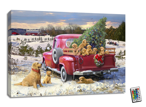 A Puppy Christmas 18x24 Fully Illuminated LED Wall Art